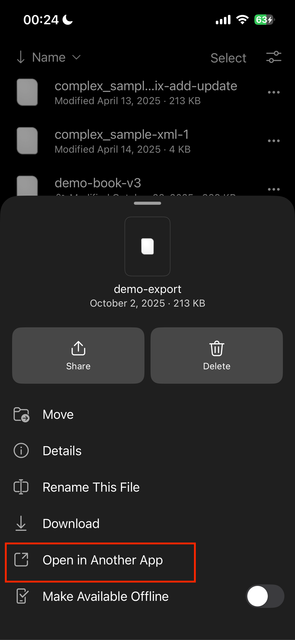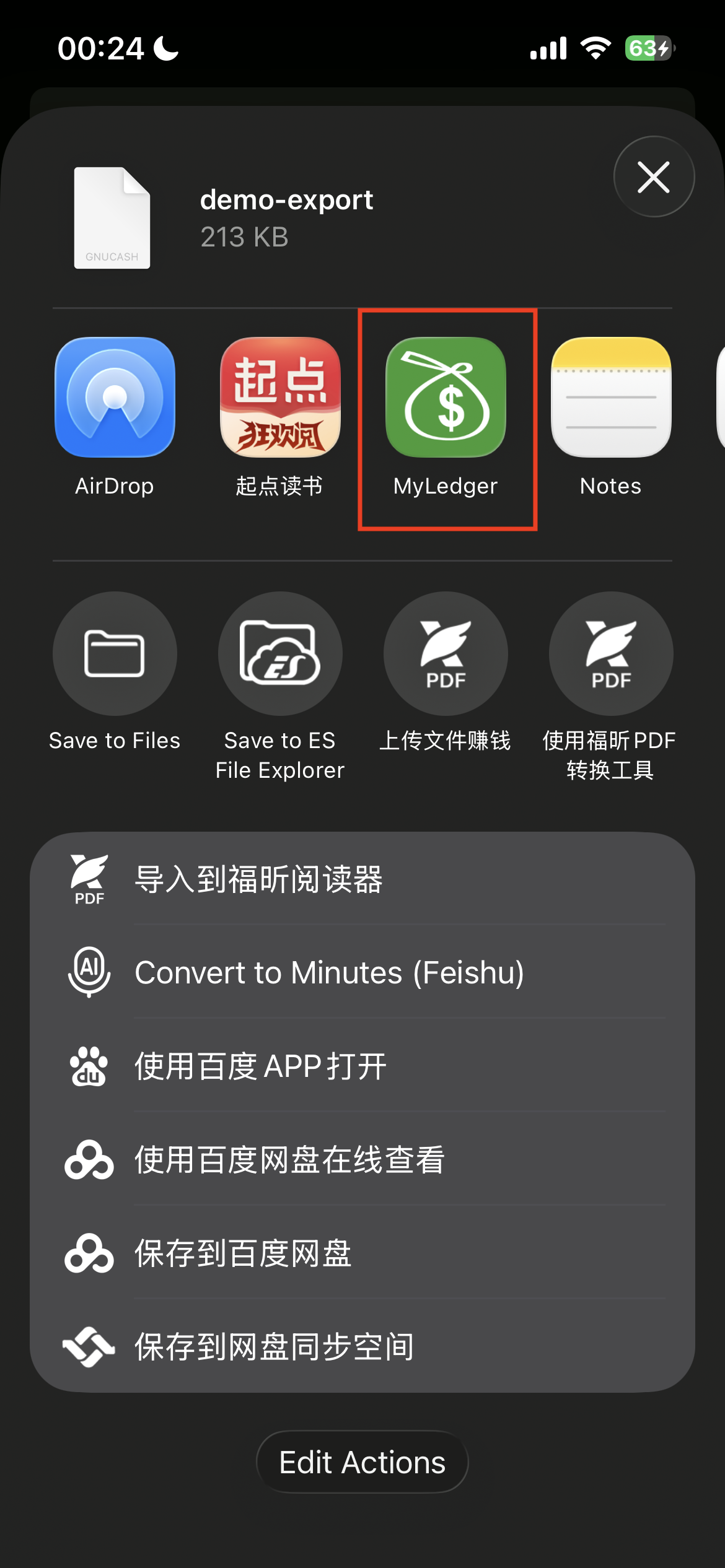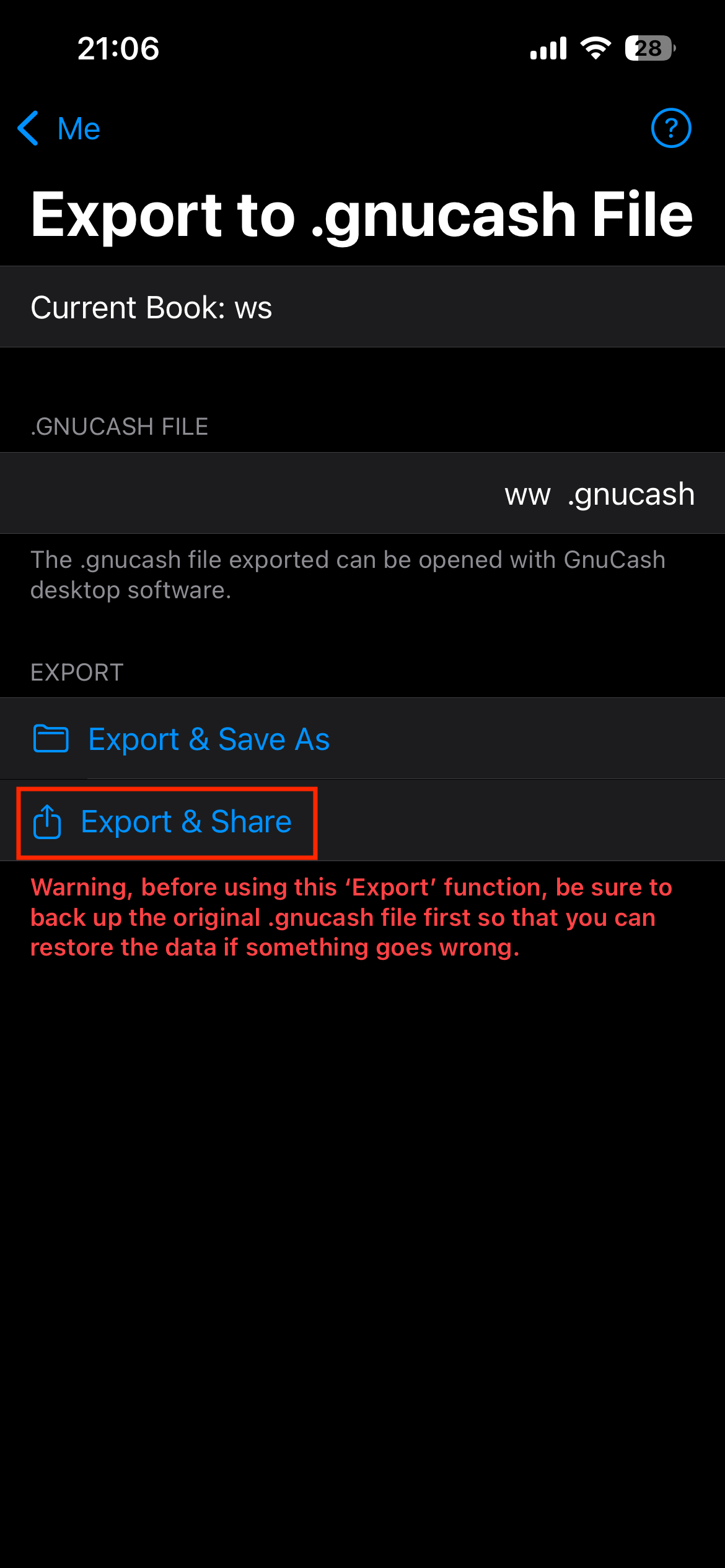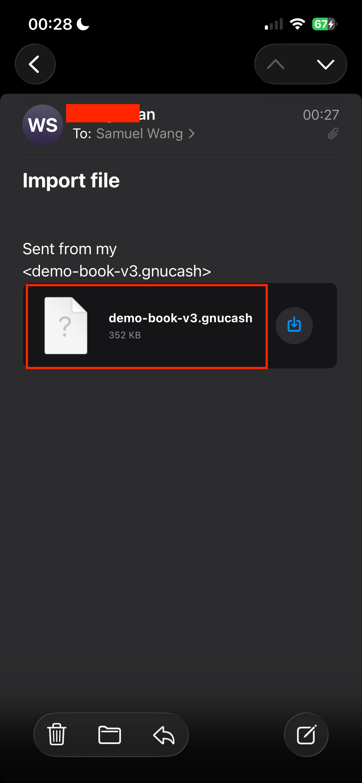 - Tap the ‘…’ on the right side of a .gnucash file.