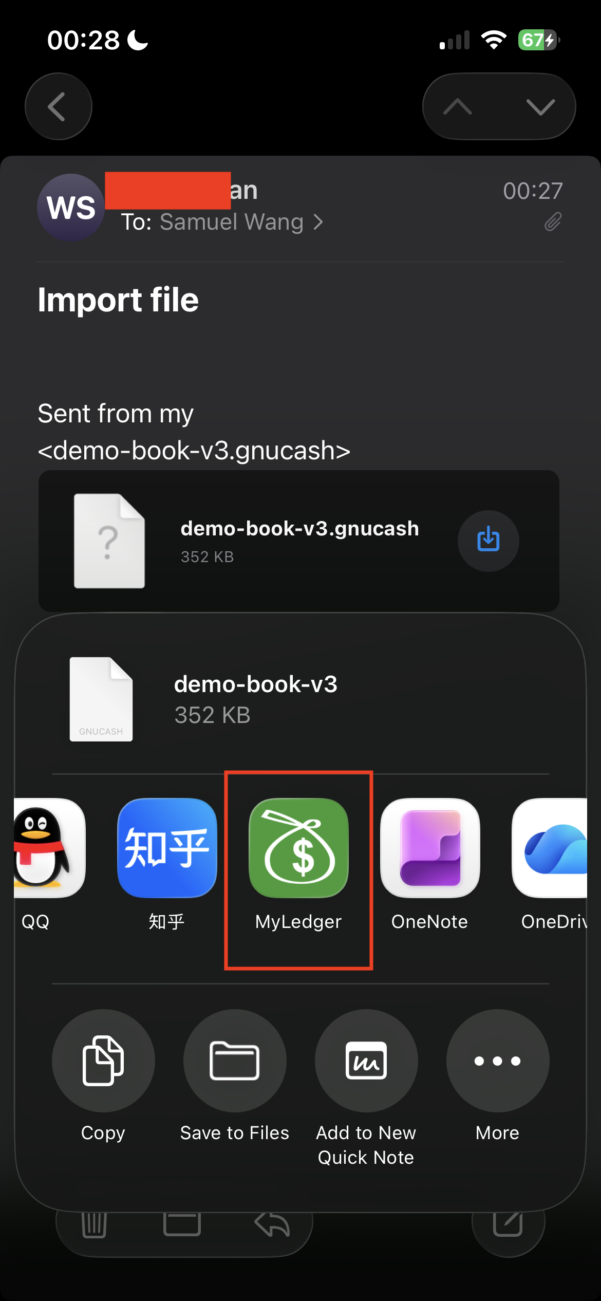 - Tap ‘MyLedger’ icon. Now you can import the data from this .gnucash file.